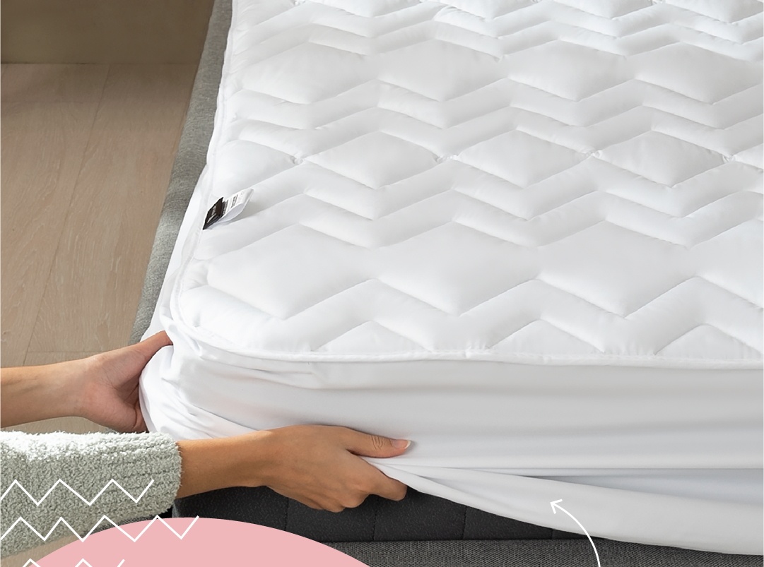 Чехол защищает весь матрас. Чехол прошит ромбовидным узором, выполнен из плотной микрофибры белого цвета. В качестве наполнителя используется силиконизированное полиэфирное волокно. Оба материала обладают антиаллергенными и антибактериальными свойствами.