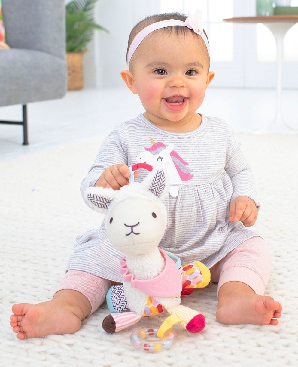Для каждого возраста малыша есть свои игрушки. Мягкая игрушка SkipHop, напоминающая милую нежную Ламу, точно понравится малышу. Особенно внимание детей привлечет погремушка на лапке, а также прорезыватель в виде подвески, который можно попробовать на вкус.