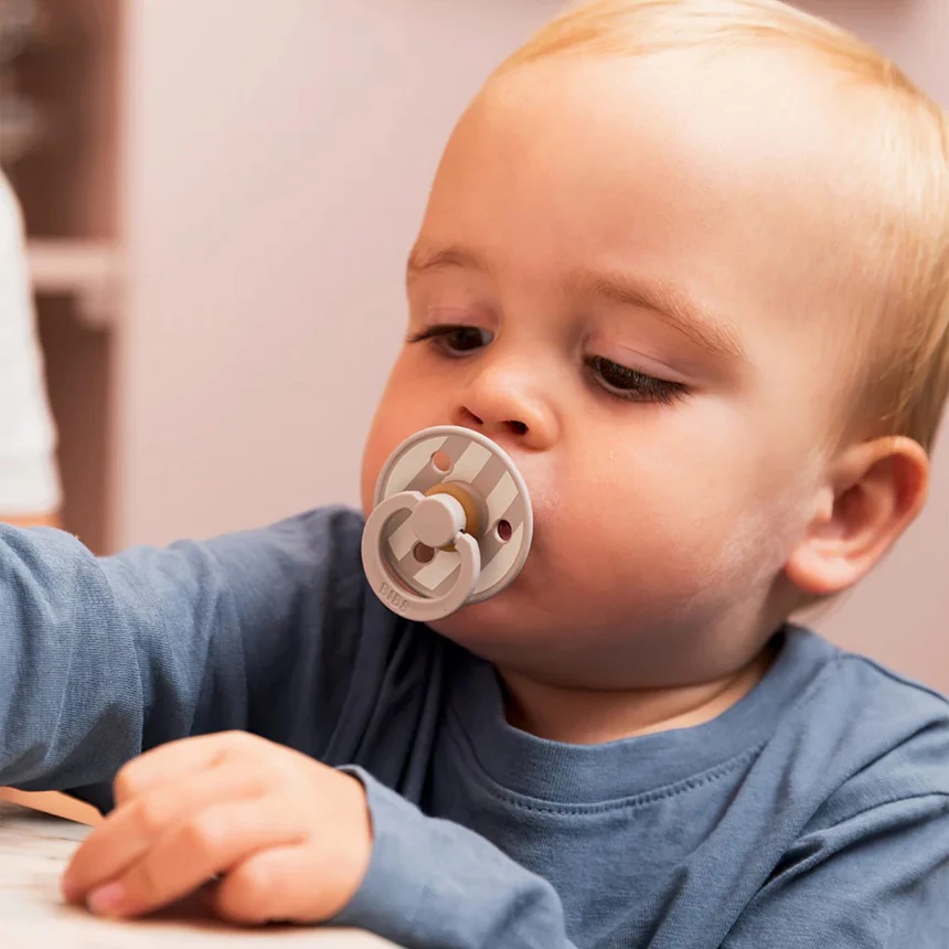 Пустышки BIBS Color изготовлены из латекса, материала, полученного из жидкости каучукового дерева (гевеи). Эту жидкость очищают, получая латекс – прочный, эластичный, мягкий материал, по текстуре напоминающий материнскую грудь.