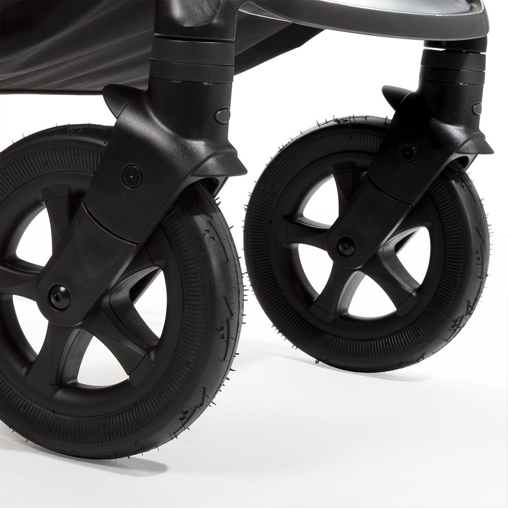 Прогулочный блок реверсивный, спинка регулируется в 5 положениях ручкой, складывается вместе с шасси в положении по ходу движения. Устойчива в сложенном состоянии. Все колеса сделаны из вспененной резины с защитой от прокалывания.