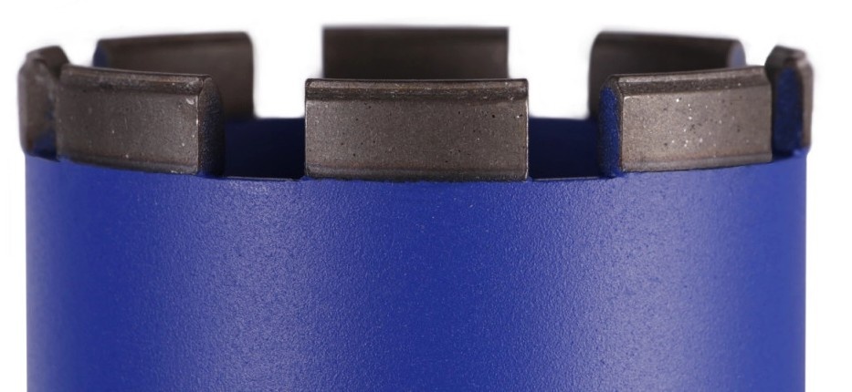 Алмазные сегменты на корпусе закреплены лазером. Это обеспечивает их надежное крепление даже в сложных условиях сверления с повышенным уровнем вибрации и ударных нагрузках.