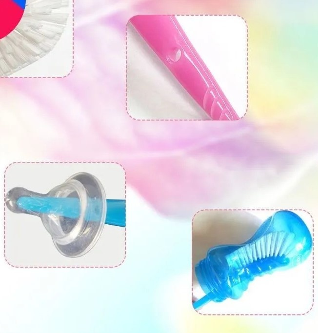 Щётка для мытья бутылочек имеет изогнутую форму, которая обеспечивает тщательное мытьё бутылочек, поильников и сосок. Кончик ручки можно использовать для удаления остатков пищи с внутренней поверхности соски.