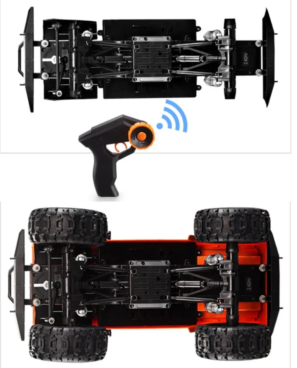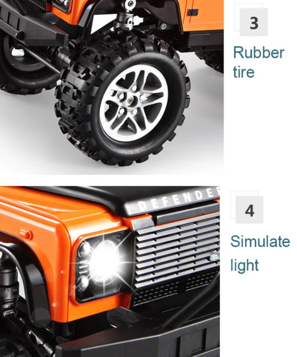 Land Rover может совершать движение в привычных направлениях вперед/назад, вправо/влево. Полный привод 4WD позволяет кататься в сложных дорожных условиях, таких как горы, песчаные земли, бездорожье, скалистый пляж. Независимая четырехколесная подвеска добавляет устойчивости на неровных поверхностях и во время подъема. Багажник на крыше дает возможность перевозить небольшие предметы и дополнительно защищает автомобиль. На Land Rover установлен комплект освещения, что дает возможность кататься и в темное время.