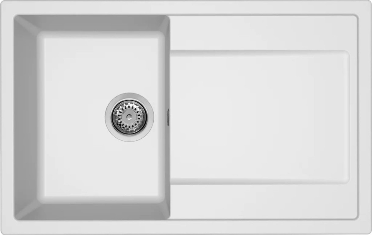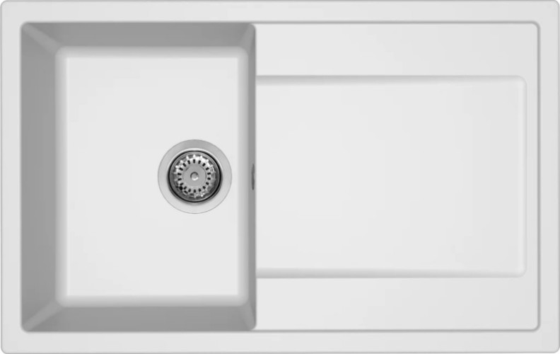 Модель имеет одну просторную чашу глубиной около 22-23 см, что удобно при мытье крупных предметов. По размерам примерно 79 × 50 см, что позволяет установить мойку в тумбу от 45 см.