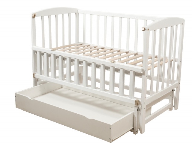 Важным дополнением является ящик, который присоединен снизу и достаточно легко выдвигается. Она будет служить не только для хранения постельного белья, но и для игрушек, одежды или вещей малыша