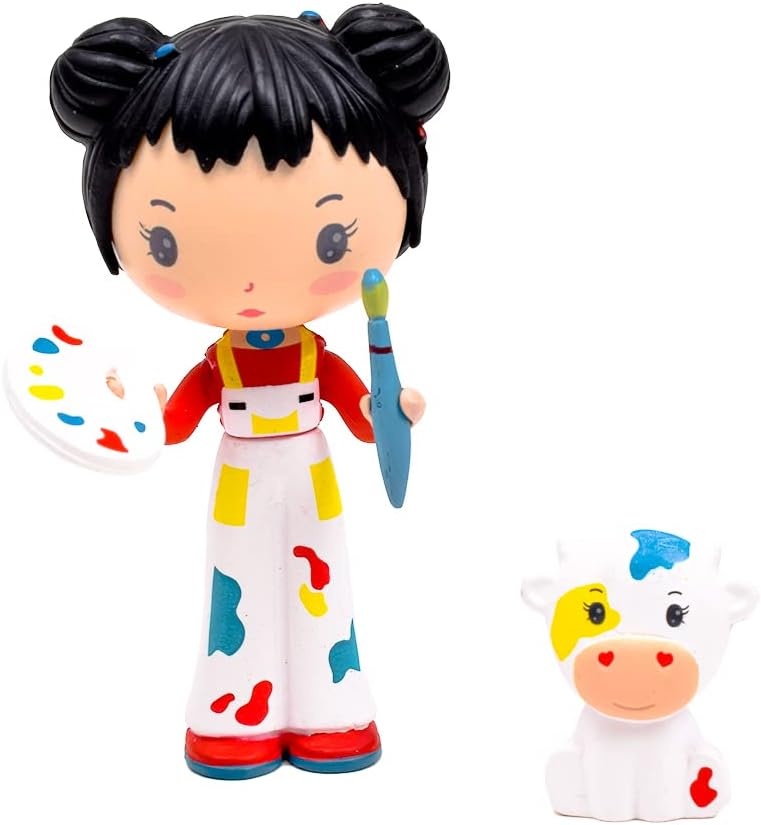 Она никогда не расстается со своей маленькой коровкой-спутницей Грибс, у которой тоже забрызгана краска на ее чудесную мягкую шерсть!