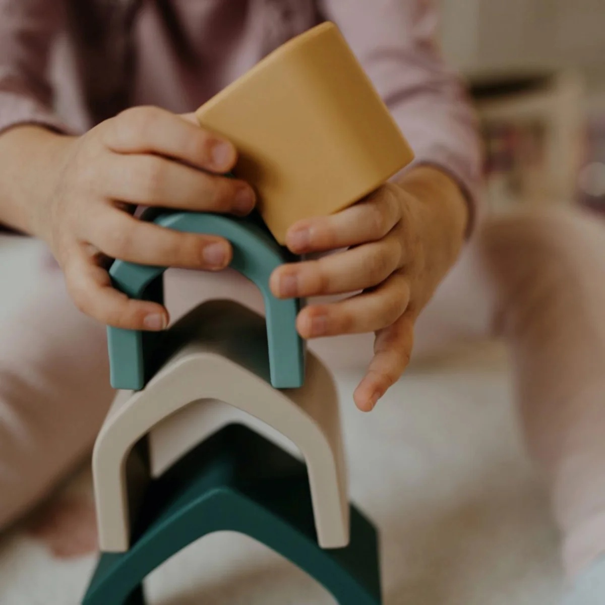 Мягкие силиконовые элементы изготовлены исключительно из пищевого силикона, не содержащего бисфенол А. Высочайшее качество, прочные материалы, внимание к деталям и тщательно подобранные размеры арок позволяют ребенку играть безопасно и стимулировать его развитие.