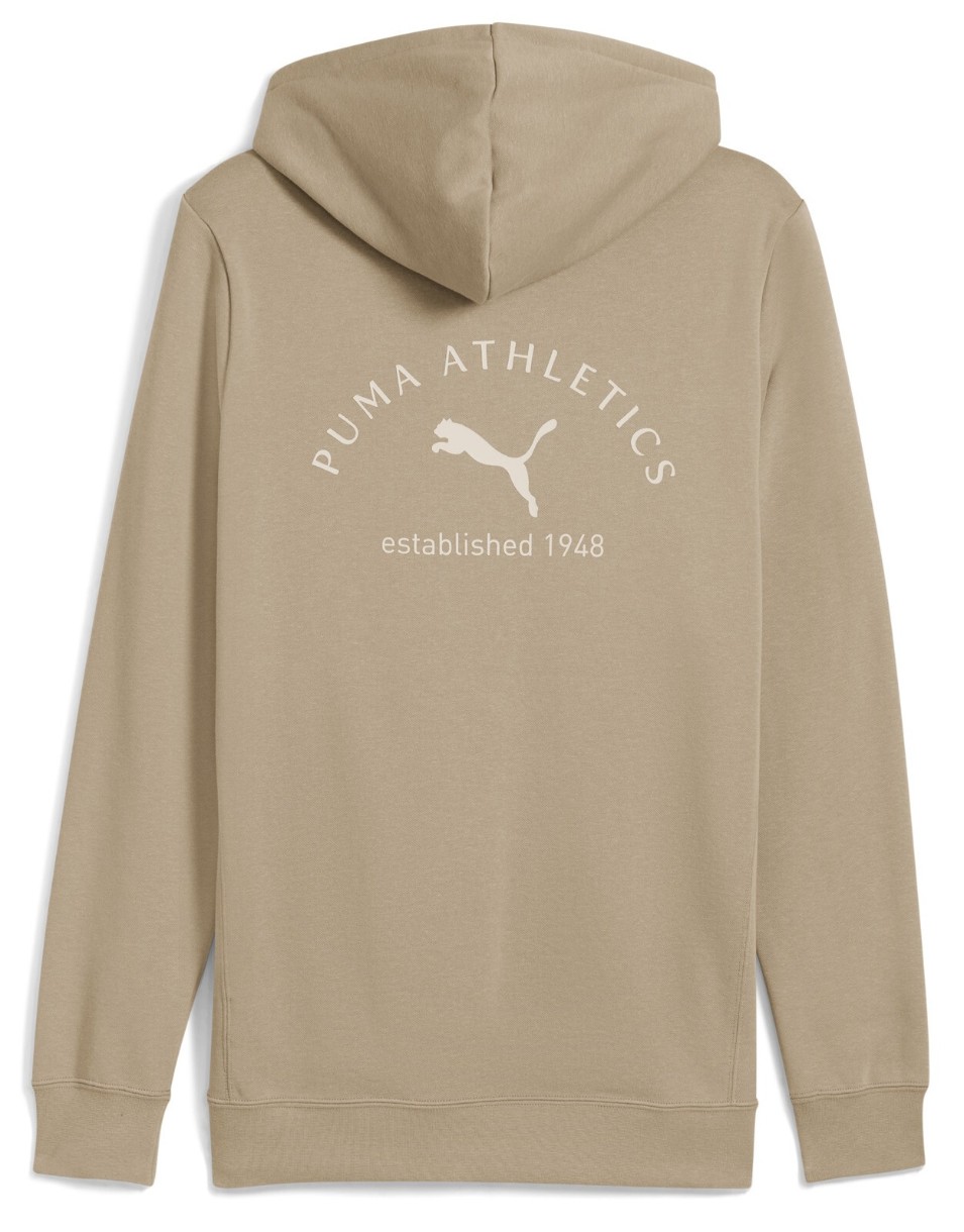 Карман-кенгуру в этой модели не только придаёт образу расслабленный спортивный характер, но и обеспечивает дополнительный комфорт: в него удобно спрятать руки в прохладную погоду или хранить мелочи, которые всегда должны быть под рукой. А графические принты Puma Athletics на груди и спине делают образ заметным и добавляют динамики — идеальный акцент для городского ритма.