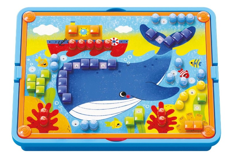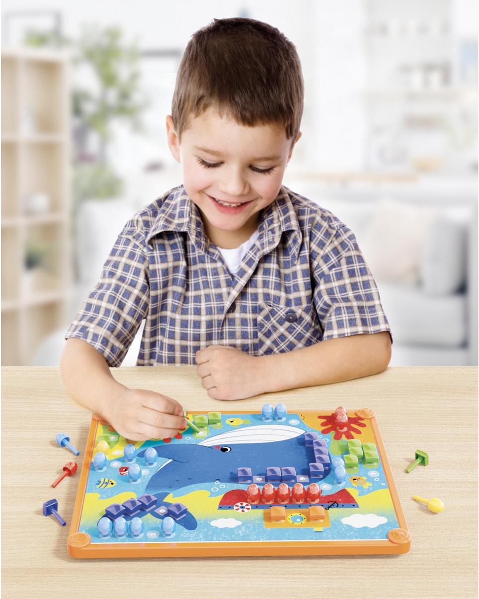 Мозаика из булавок с корзиной для хранения и 4 предварительно распечатанными карточками с картинками для пробивания колышков. Мозаика развивает мелкую моторику, зрительно-моторную координацию и творческое мышление. Он состоит из 4 предварительно напечатанных карточек, 180 цветных штифтов, канавочной площадки, держателя и корзины для хранения. Рекомендуется для детей от 3 лет.
