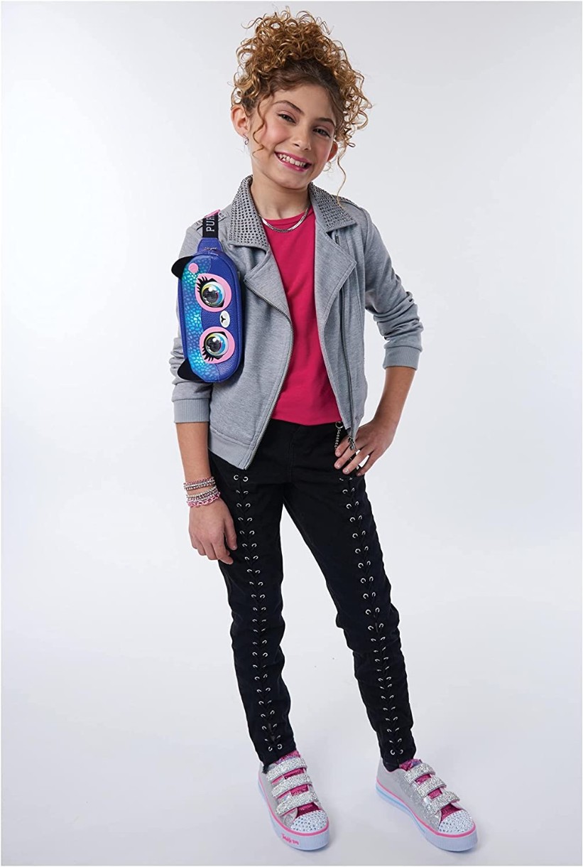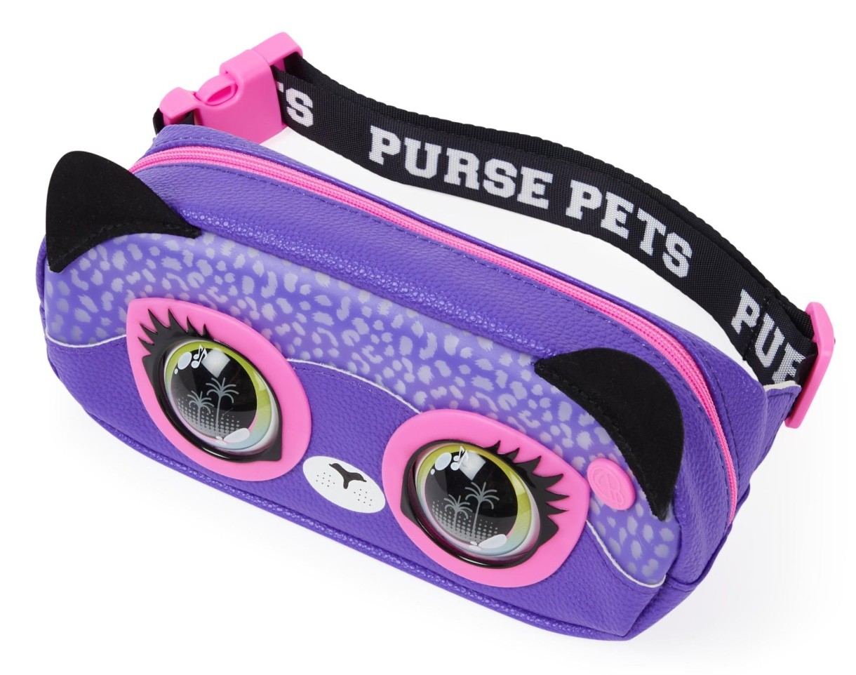 Впервые в истории представляем новую интерактивную поясную сумочку PURSE PETS! Сумочка имеет красивый светящийся рисунок, благодаря смене цветов пятен гепарда! Новая сумочка Purse Pets имеет все необходимое, чтобы сделать ваш образ ярким. Сумочка имеет акценты из полиуретановой кожи и радужный водопад светодиодных лампочек, регулируемый ремешком. У сумочки есть 3 режима: В режиме ´On The Glow´ - сумочка будет непрерывно светиться, создавая потрясающий радужный образ, куда бы вы ни пошли! Или, если вы подбираете идеальный фасон, вы можете выбрать конкретный цвет огней, чтобы идеально сочетаться с вашим нарядом! Затем включите режим Rainbow Rave - (мы знаем, что дети любят наш музыкальный режим), и настанет время для самой настоящей танцевальной вечеринки. Новая поясная сумка - откроет вам мир танцев, в ней больше музыки, чем в любой другой сумочке-питомце! Включает 5 новых песен, стильный внешний вид, световое шоу и совершенно новые ритмы, с которыми можно выйти на улицу!