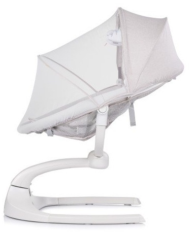 В комплект входят: шезлонг со съемной мягкой обивкой, балдахин с сеткой, зарядное устройство, пульт дистанционного управления и игрушки для развлечения.
