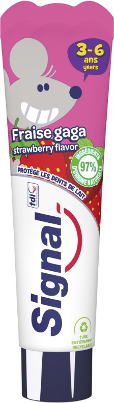 Безопасная и к тому же приятная на вкус чистка зубов — с пастой Signal для детей. Формула средства разработана для эффективного удаления налета и остатков пищи, а также бережного ухода за молочными зубами. Продукт можно использовать детям с 3 до 6 лет.