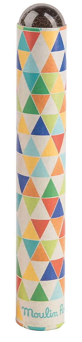 Дети будут рады познакомиться с замечательной оптической игрушкой – калейдоскопом от французской компании «Moulin Roty». Внутри волшебной трубки спрятан особенный волшебный мир, на который можно взглянуть через окуляр. Ребенок будет в восторге от сменяющих друг друга симметричных, разноцветных и никогда не повторяющихся узоров.
