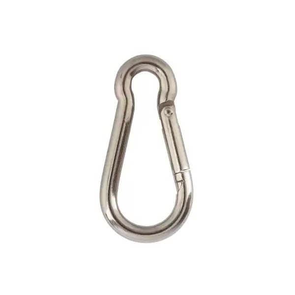 Карабин из нержавеющей стали A4 представляет собой крепежное устройство с пружинным механизмом закрытия, используемое для быстрого и надежного соединения элементов. Он имеет форму овала или D-образную форму с воротником, который можно открывать и закрывать для прикрепления или отсоединения карабина от канатов, тросов, цепей или других крепежных точек.