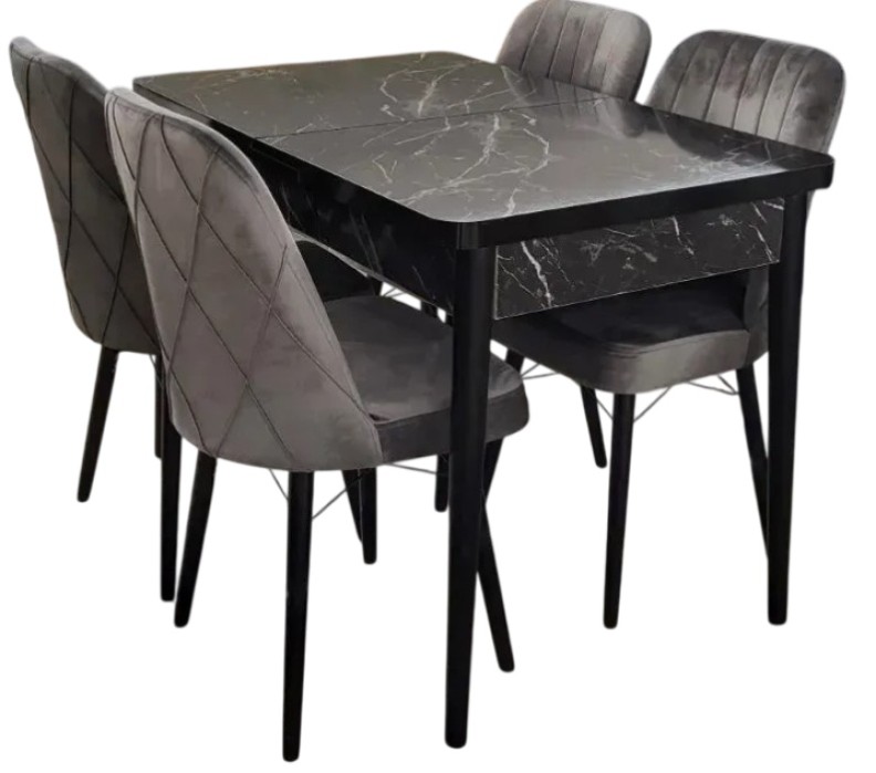 Комплект для столовой Magnusplus Karegold Bendir + 4 Chairs Eco Velour Gray