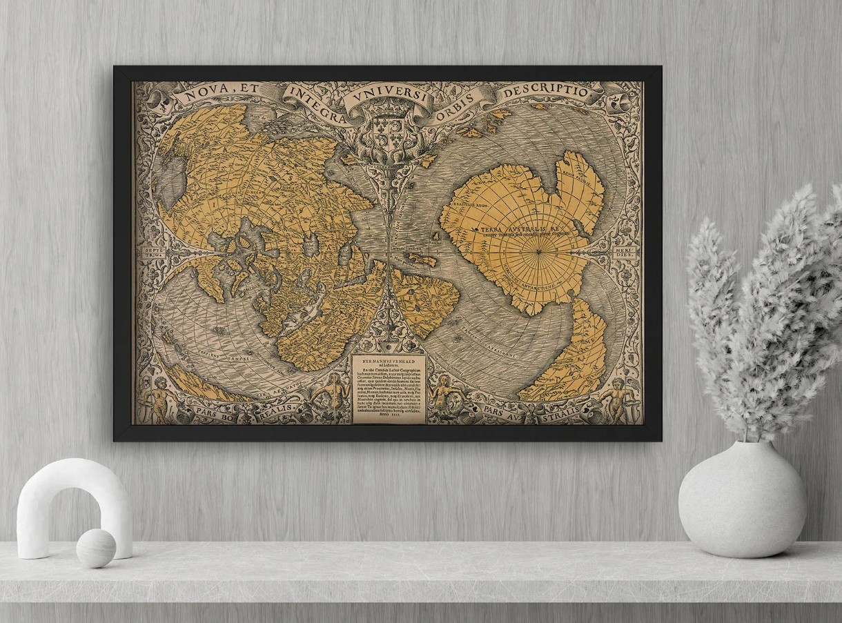 Эта винтажная карта мира в черной раме сочетает в себе элегантность и историческую эстетику. Идеально подходит для кабинета, гостиной или офиса, добавляя пространству характер и интеллектуальный акцент. Великолепный выбор для любителей истории и путешествий.