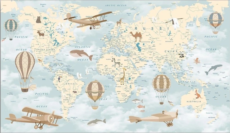 Этот очаровательный постер на холсте с картой мира станет прекрасным украшением детской комнаты и пробудит интерес к путешествиям. Карта выполнена в нежных пастельных тонах и дополнена иллюстрациями воздушных шаров, ретро-самолетов, морских животных и экзотических животных разных континентов. Дизайн сочетает в себе эстетическую привлекательность и образовательную ценность, помогая ребенку узнать больше о мире. Такая печать на холсте идеально подходит для создания уютной и вдохновляющей атмосферы в детской, игровом уголке или даже в классе. Качественная печать гарантирует четкость деталей и долговечность. Прекрасный подарок для маленьких исследователей и мечтателей!