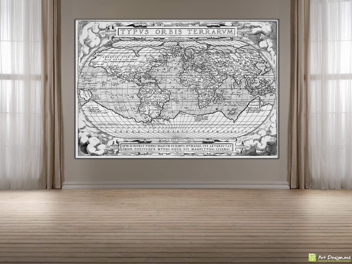 Этот постер на холсте с изображением старинной карты мира в черно-белом исполнении добавит исторический шарм в любой интерьер. Детали карты, выполненной в классическом стиле, напоминают о временах великих путешествий и исследований. Картина будет прекрасным дополнением для кабинета, библиотеки или любого пространства, где ценят эстетику старинных карт и научные открытия. Печать высокого качества на холсте из Кишинева обеспечит яркие и насыщенные цвета, которые будут радовать вас долгое время.