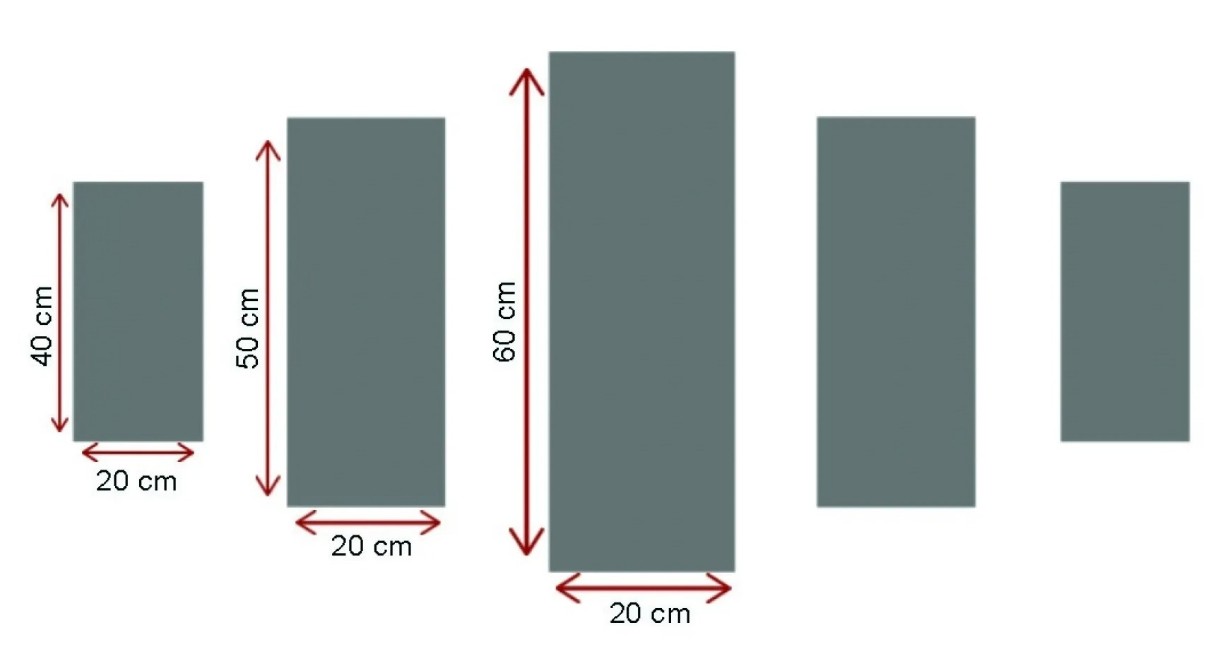 ОсобенностиРазмеры: 20x60 (1 штука )|, 20x50 (2 штуки ), 20x40 (3 штуки )