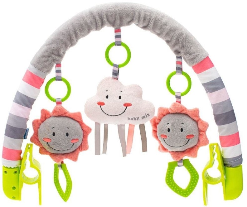 Дуга для коляски Baby Mix является предметом, который прикреплённый к коляске, стульчику или креслу-качалке привлечёт внимание и разнообразит времяпровождение малыша, а разноцветные плюшевые игрушки подарят ему прекрасное настроение во время прогулки.