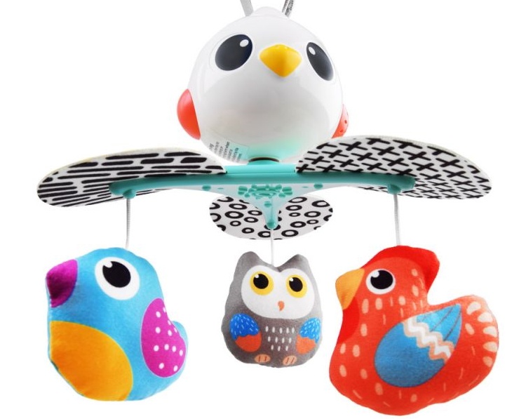 Музыкальная карусель с птицами с рамкой, вращающейся на 360 градусов. С 10 успокаивающими песнями, которые можно воспроизводить непрерывно до 30 минут. Цвета привлекают взгляд малыша, пробуждая в нем любопытство и желание учиться. Звуки и мелодии, издаваемые им, возбуждают его любопытство, открывая новые способы игры. Карусель также можно вращать без активации песни.