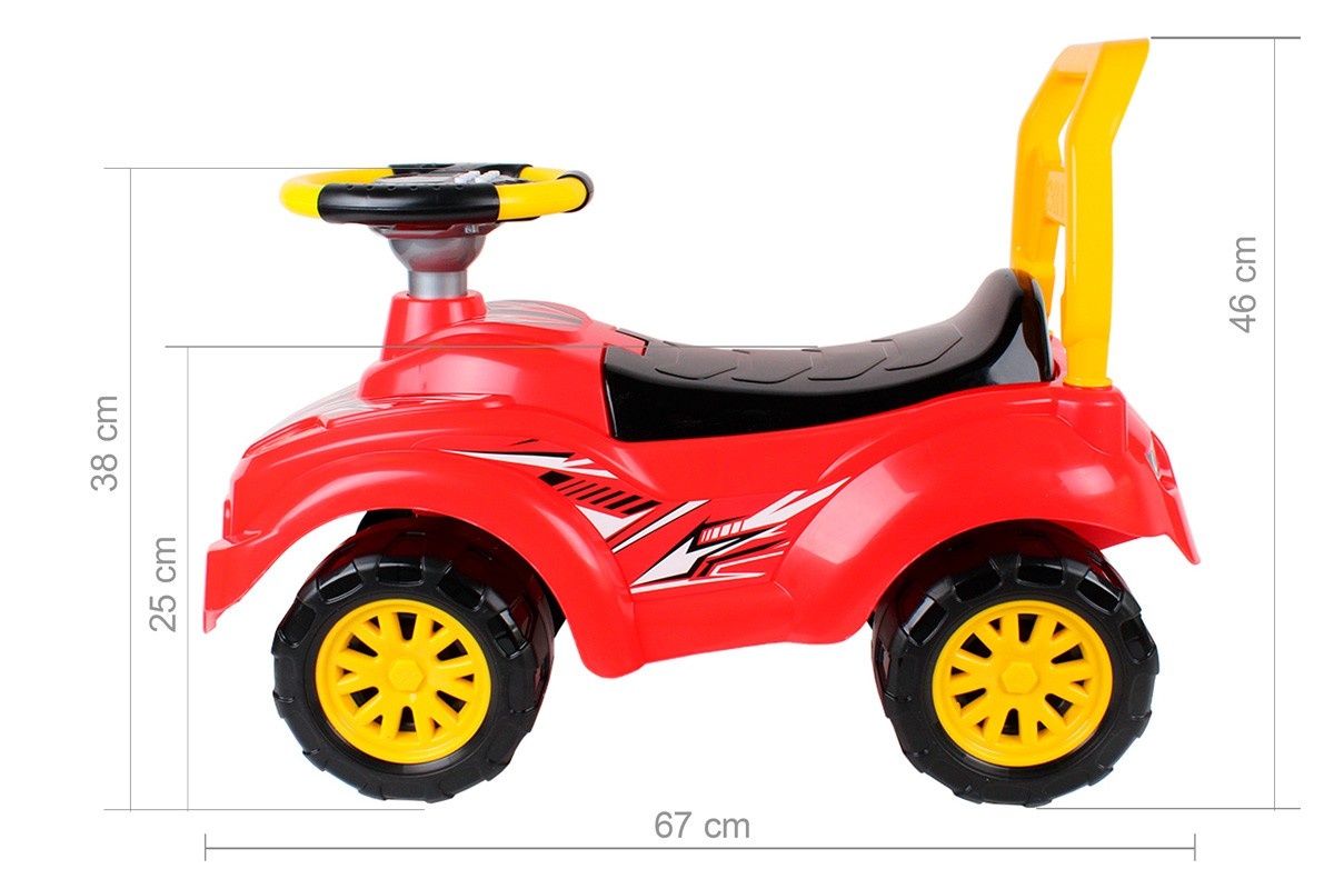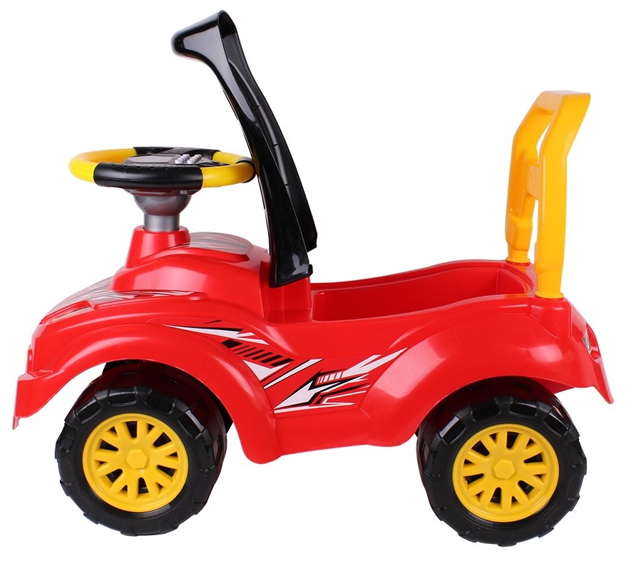 Яркие цвета, "крутые" наклейки, эргономичный дизайн, захватывающие звуки и сигналы непременно привлекут внимание малышей к игрушке. А новый электронный руль принесет море радости Вашим детям во время катания на автомобиле. Восемь кнопок - это восемь различных сигналов: запуск двигателя, резкое торможение, экстренные службы полиции, скорой и пожарной помощи, предупредительный «фа-фа» и веселая музыка. Автомобиль надежный, прочный, практичный и удобный. Для перевозки всех необходимых вещей разработан большой багажный отсек под сиденьем.