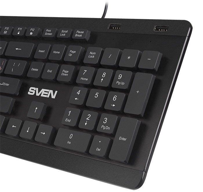 К компьютеру клавиатура подключается посредством кабеля USB длиной 1,5 метра. На ее верхней панели располагаются два USB-порта , что очень удобно: теперь не нужно будет тянуться к системному блоку для подключения внешнего накопителя или, например, гарнитуры. Рассказывать о достоинствах SVEN KB-E5700H можно долго, но лучше один раз увидеть. Тем более сделать это очень просто — она уже доступна в каталогах крупных магазинов электроники.