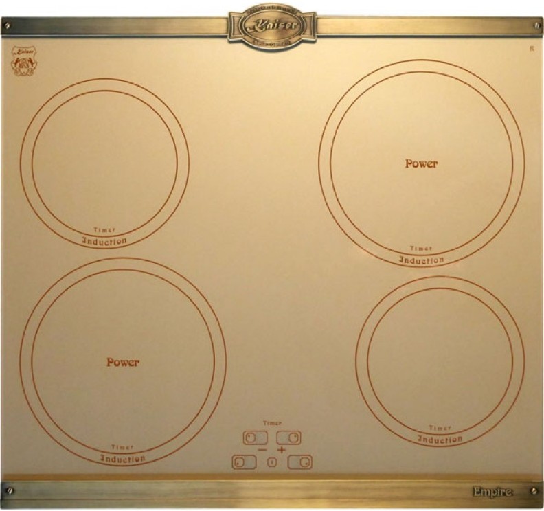 Индукционная варочная поверхность Kaiser KCT 6395 I ElfEm — новинка дизайнерской линейки Empire цвета «слоновая кость». Варочная панель обладает передовыми характеристиками, включением функции увеличения мощности Power и системой автоматического отключения. Стеклокерамика, из которой изготовлена поверхность, высокой прочности с износостойкой графикой и бронзовым напылением как видно на фото. Индикация остаточного нагрева и блокировка панели управления, защитит детей.