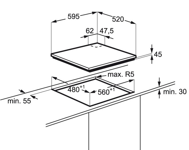 Размеры для встраивания (ШхГ)48x56 см
