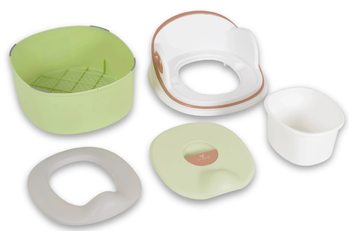 Может использоваться как классический горшок, мягкий адаптер для унитаза или подставка для ванной.