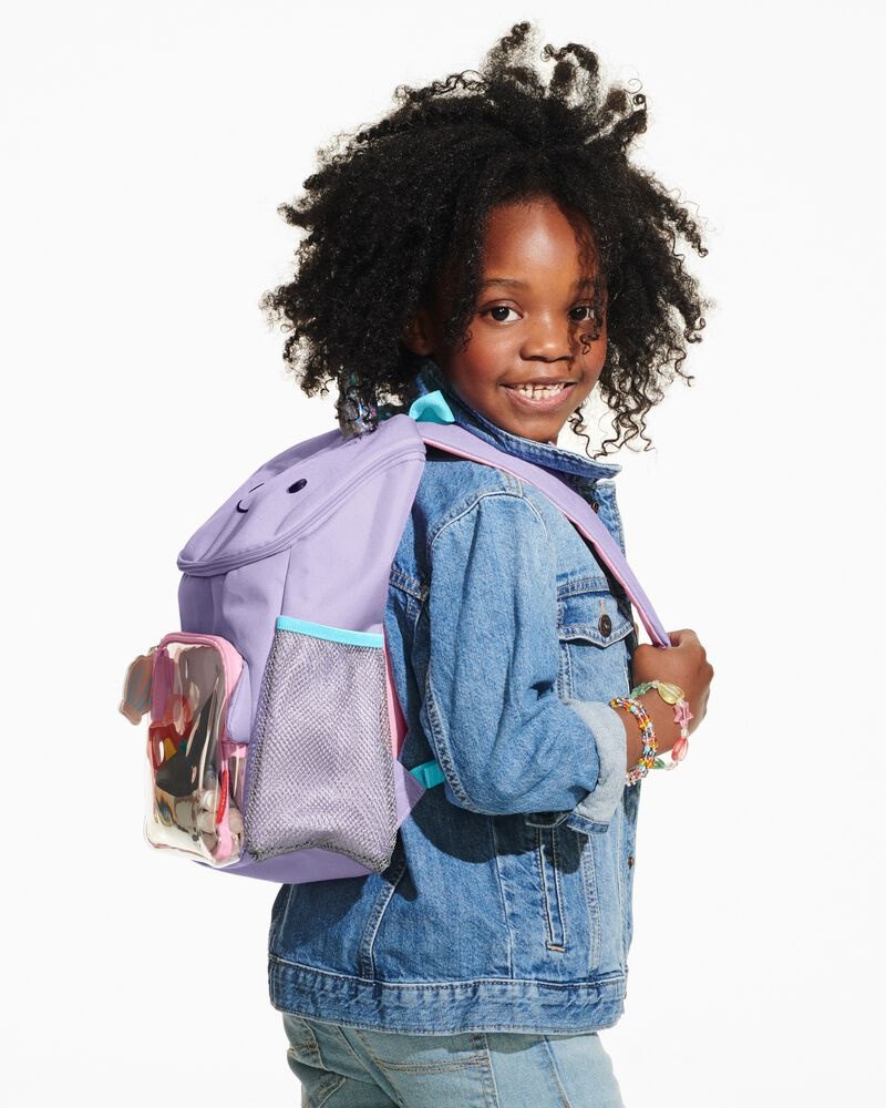 Размер нашего симпатичного большого детского рюкзака идеально подходит для школьных папок, принадлежностей, сумки для обеда (и многого другого!), в него поместятся все предметы первой необходимости, необходимые вашему малышу для занятий в классе и не только. Благодаря широкому легкодоступному отверстию и прозрачному переднему карману в него можно с легкостью упаковать и взять с собой все необходимое, а в сетчатом кармане для бутылок напитки всегда будут под рукой.
