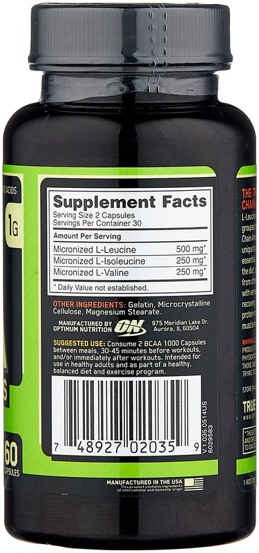 Из-за уникальной разветвленной химической структуры лейцин, изолейцин и валин принято выделять в одну группу — аминокислоты с разветвленной цепью (BCAA). Аминокислоты группы BCAA очень важны и должны быть обязательным элементом диеты, так как организм человека не способен вырабатывать их из составляющих элементов. Они обеспечивают взрослому человеку разностороннюю поддержку при тренировке выносливости и в процессе восстановления после тренировок. Употребление этих граммовых капсул с протеиновым порошком и/или с богатой белками пищей способствует восстановлению мышц и синтезу белка.Рекомендации по применению: