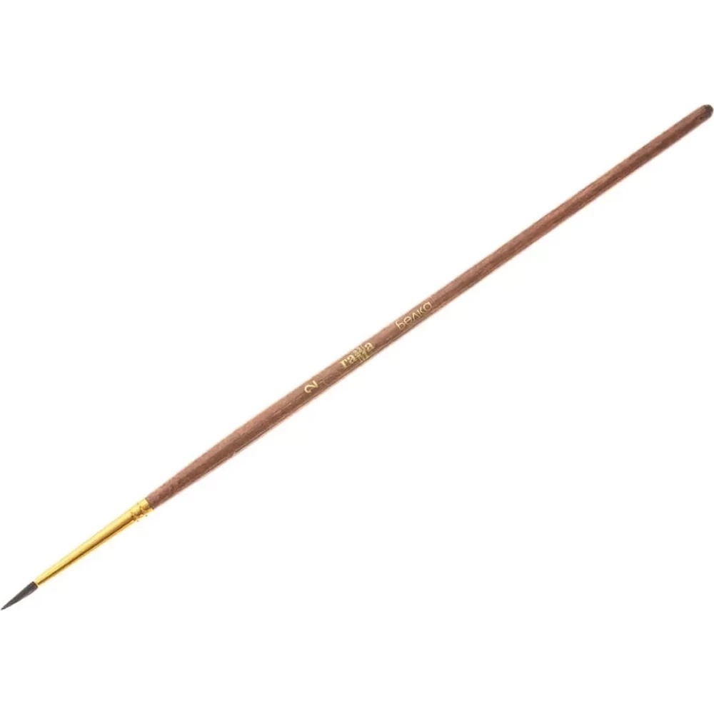 Кисть из волоса Белки, круглая. Предназначена для работы акварелью и гуашью. Волос отлично удерживает краску. Хорошо держит форму в течение срока службы. Обойма выполнена из полированного алюминия с золотистым напылением. Ручка изготовлена из качественной древесины березы, покрыта глянцевой эмалью с фактурой дерева.