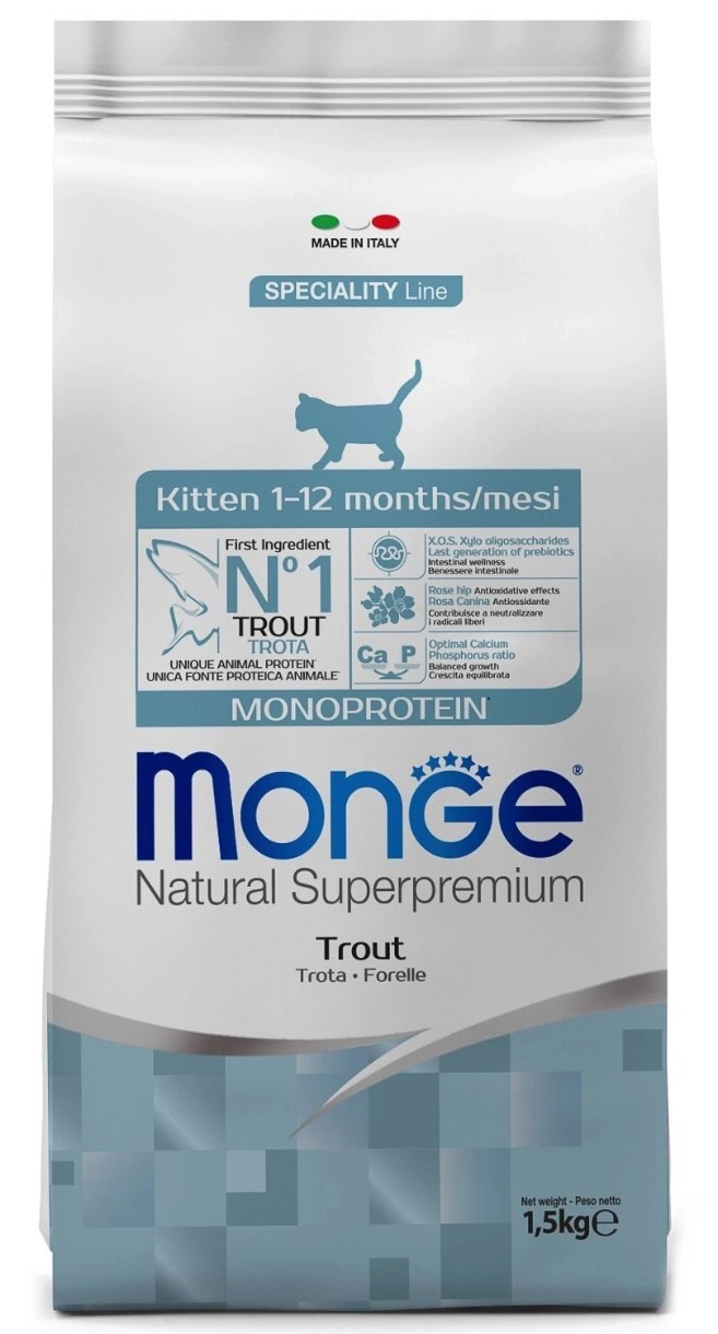 Сухой корм для кошек Monge Superpremium Kitten Monoprotein Trout 1.5kg