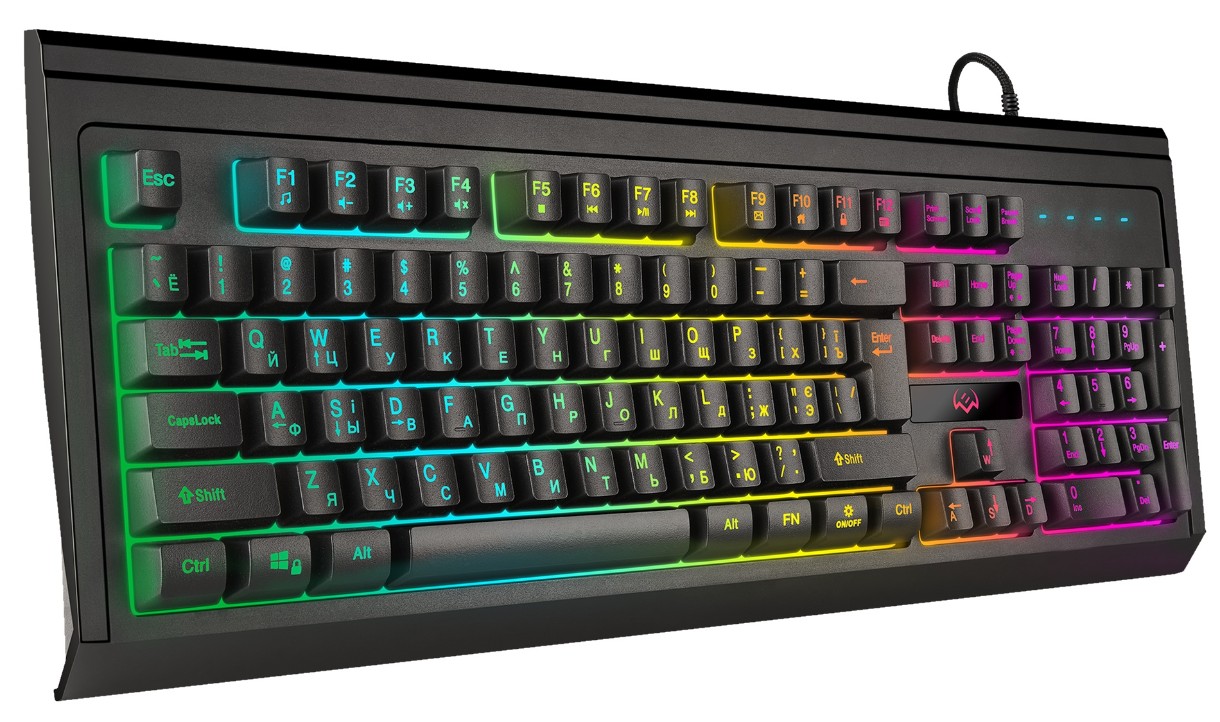 SVEN KB-G8400 придется по вкусу любителям «клавиатурной классики» — это полноформатная клавиатура с 104 клавишами, среди которых большой «двухэтажный» Enter и длинные Shift. Самые востребованные функции — от изменения громкости до управления воспроизведением — можно осуществлять с помощью верхнего ряда клавиш, мультимедийные функции которых активируются при нажатии кнопки-модификатора Fn. Добавить новых умений SVEN KB-G8400 можно с помощью программирования клавиш и записи макросов, которые помогут сделать из нее настоящее «ультимативное кибероружие», которого нет у других игроков.