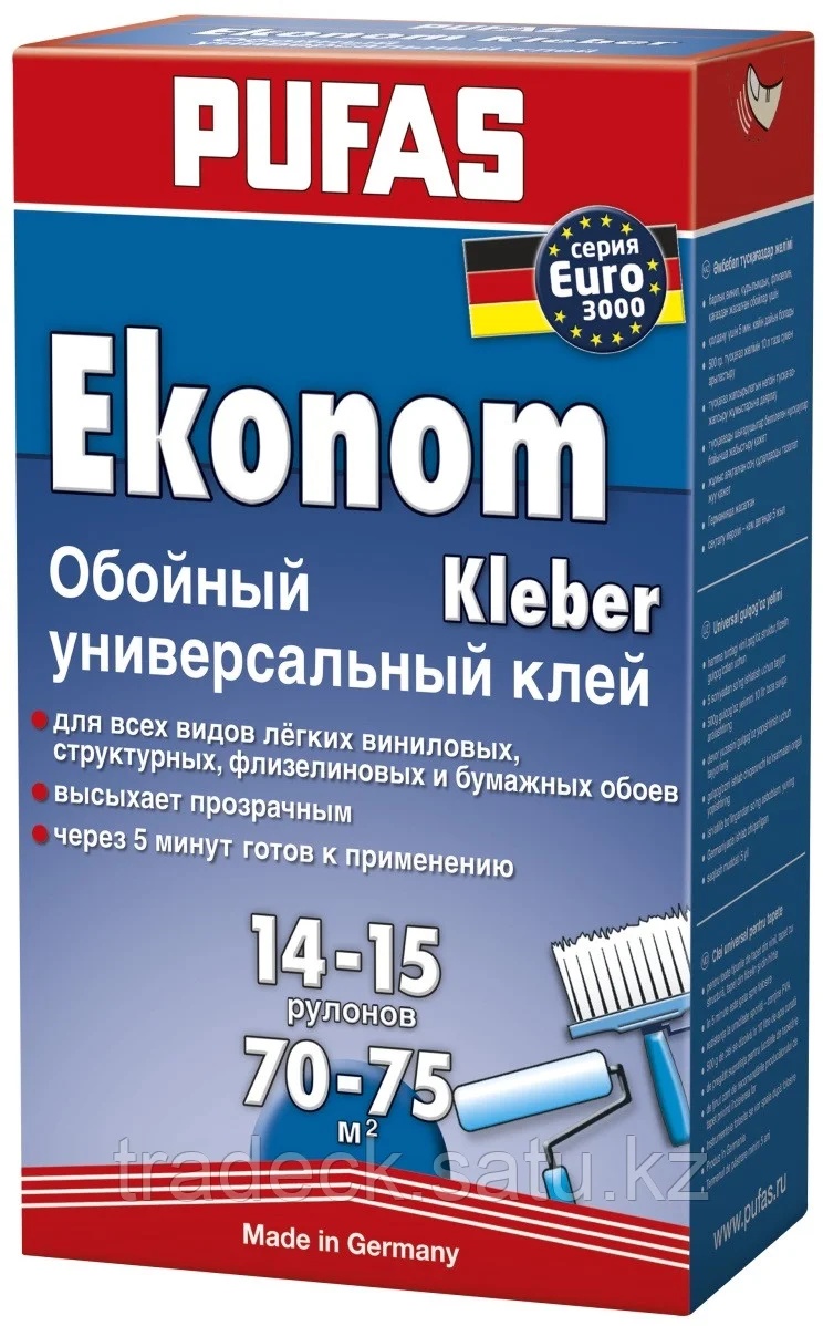 Универсальный для наклеивания всех видов бумажных обоев от лёгких до тяжёлых, а также лёгких виниловых на все минеральные основания, такие как гипсовая, известковая и цементная штукатурка, бетон, гипсокартонные плиты и т.п