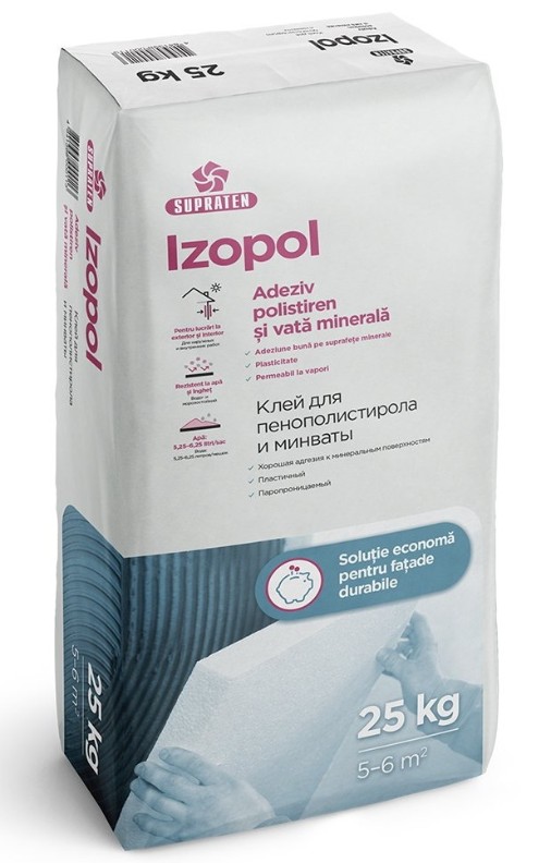 IZOPOL — клей для систем теплоизоляции на основе смеси высокопрочного цемента, модифицированных полимеров и реологических добавок.