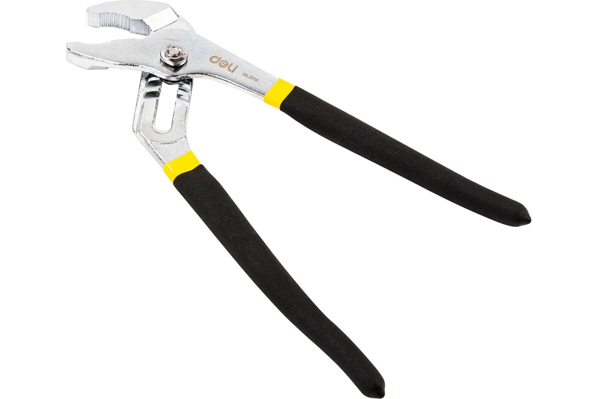 Переставные клещи DELI DL2612 98458 подходят для профессионального и бытового использования. Клещи изготовлены из высокоуглеродистой стали, что обеспечивает прочность и долговечность. Инструмент оснащен противоскользящей ручкой для удобной работы. Термообработанная головка с твердостью до 45-48HRC регулируется в 7 положениях и обладает рабочим диапазоном 12-65 мм.