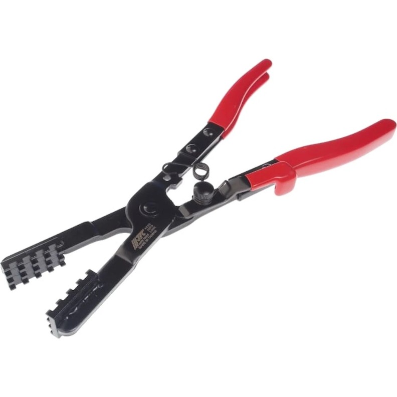 Специальная конструкция захватов подходит для пружинных хомутов Оснащены ручным фиксатором положения, что позволяет держать клещи открытыми Диапазон захвата: 0-65 мм.