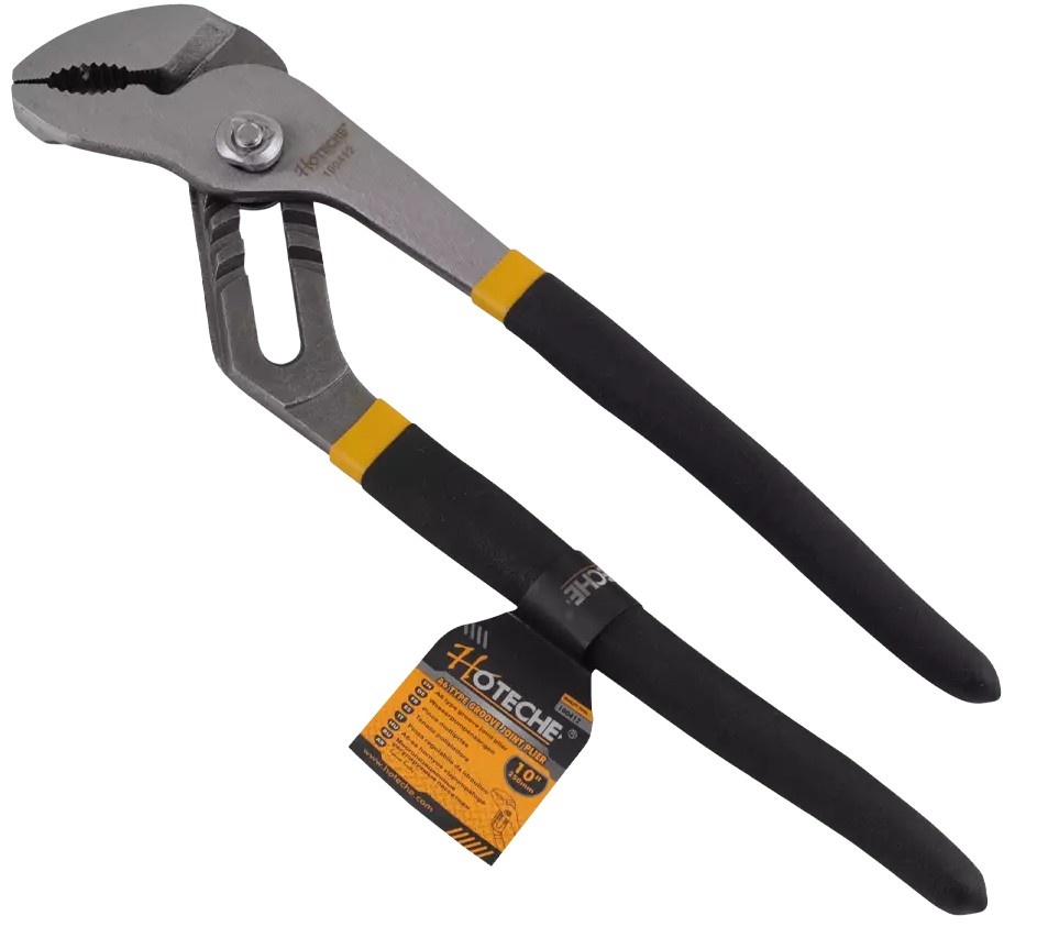 Клещи переставные HOTECHE 100412 250мм - это прочный ручной инструмент, с помощью которого удобно удерживать, фиксировать, закручивать и откручивать гайки или трубы. Благодаря переставной конструкции губок и их форме можно подстраиваться по размеру детали и его форме. Корпус изготовлен из стали, долговечной и стойкой к возникновению коррозии.