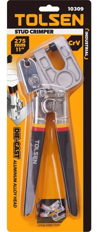 Рабочая часть из алюминиевого сплава. Штифт из углеродистой стали #40. Рукоятки никелированные с тройным ПВХ-обливом. Для соединения металлических профилей просечкой с отгибом.