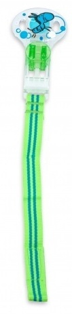 Во избежание неприятных ситуаций можно решить проблему, прикрепив пустышку к одежде крохи. Пустышка изготовлена из силикона, очень деликатно прислоняется к лицу мягким основанием, не беспокоя ребенка даже во время сна. Изделие имеет интересный дизайн – клипса украшена изображением забавных зверушек, а текстильный держатель в яркую полоску. Соска крепиться к держателю благодаря липучке. Изделие выполнено из высококачественного текстиля и пластика, не содержит в своем составе вредных веществ, опасных для здоровья младенца.