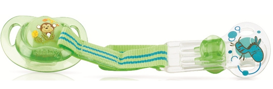 Если Ваш малыш в гневе постоянно выбрасывает соску, Вам необходимо приобрести клипсу-держатель от компании «Nuby», благодаря которому соску можно закрепить на одежду крохи, и она никуда не пропадет и не испачкается, как бы Ваш озорник не злился. Клипса-держатель – незаменимый помощник для родителей новорожденного. Родители знают, что дети могут выплюнуть соску на землю или потерять ее во время прогулки.