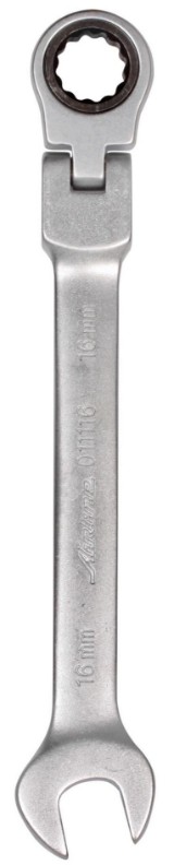 Ключ комбинированный трещоточный используется для работы с любым крепежом, особенно в труднодоступных местах. Ключ изготовлен в виде класического комбинированного гаечного ключа. На одной стороне имеется рожковый профиль, на второй стороне накидной профиль с 12ю гранями и встроенным храповым механизмом. Храповик имеет 72 зуба, что позволяет работать в очень ограниченном пространстве с углом возврата ключа всего 5°. При этом конструкция храповика изготовлена из высококачественной хром-ванадиевой стали, что обеспечивает передачу повышенного крутящего момента.