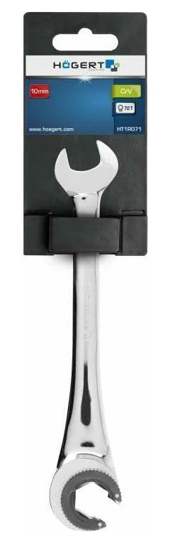 Комбинированный ключ HOEGERT TECHNIК трещоточный разрезной 10 мм HT1R071 подходит для типового крепежа. Имеет высокую прочность, а также, за счет увеличенной ширины основания головок выдерживает нагрузки при работе с тугим крепежом.