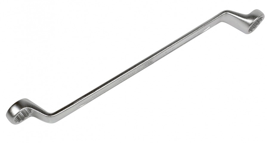Ключи относятся к накидному типу, двухразмерные, имеют 12-гранный рабочий профиль и специальный изгиб под углом 75°, позволяющий работать с крепежом в углублении или других труднодоступных местах.