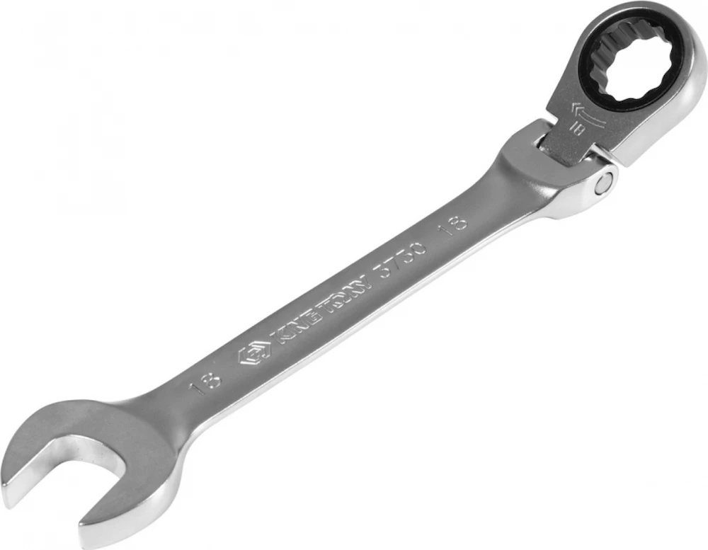Трещоточный комбинированный ключ с шарниром KING TONY широко используется в бытовых условиях и профессиональных слесарных мастерских для ремонта и обслуживания различных конструкций и механизмов, где применяется шестигранный тип крепежа. Ключ представляет собой двусторонний ручной инструмент с рожковой и накидной головками. Накидная расположена на специальном шарнире для возможности выбора рабочего угла, что особенно актуально при проведении крепежных операций в местах с ограниченным пространством. Также накидная часть оснащена трещоточным механизмом для ускорения откручивания/закручивания болтов и гаек без необходимости постоянного переставления ключа.