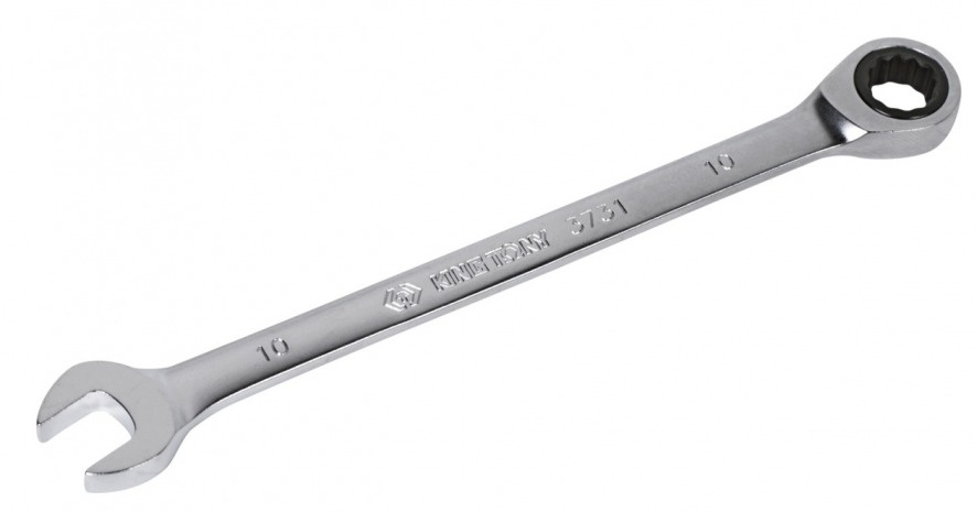 Комбинированный гаечный ключ — это универсальный инструмент, сочетающий в себе рожковый и накидной ключ одного размера. Рожковая часть (U-образный открытый зев) подходит для работы в труднодоступных местах, а накидная (кольцевая, трещоточный механизм) — для отворачивания тугих крепежей, так как равномерно распределяет усилие по граням болта или гайки.