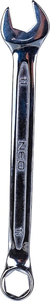 Комбинированный ключ NEO изготовлен из высококачественной хромованадиевой стали, которая за счет устойчивости к деформации и коррозии обеспечивает длительный срок службы. Рабочие грани способствуют плотному прилеганию к профилям головки крепежа, благодаря чему эффективно передается усилие и уменьшается вероятность повреждения шлицев.