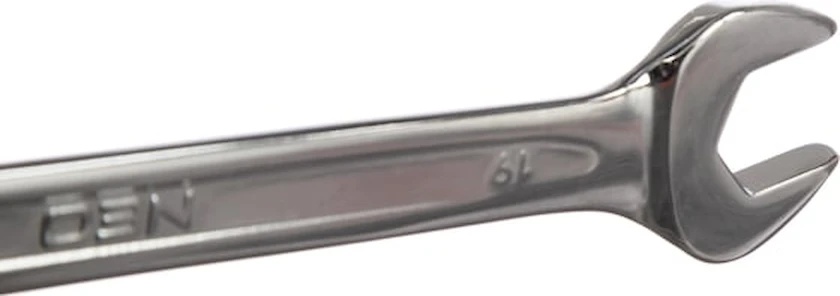 Комбинированный ключ NEO изготовлен из высококачественной хромованадиевой стали, которая за счет устойчивости к деформации и коррозии обеспечивает длительный срок службы. Рабочие грани способствуют плотному прилеганию к профилям головки крепежа, благодаря чему эффективно передается усилие и уменьшается вероятность повреждения шлицев.